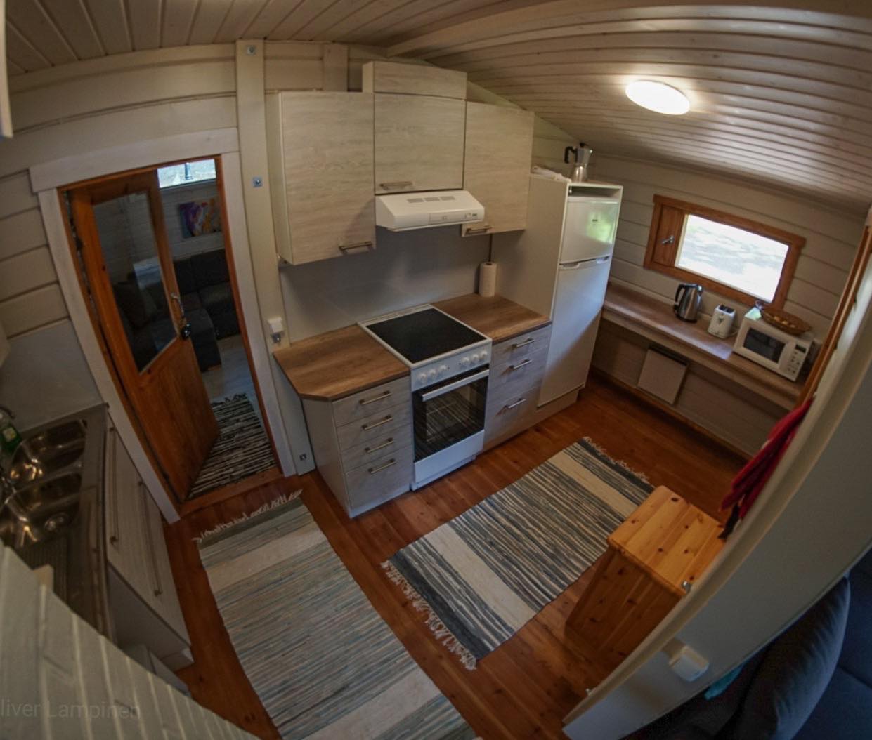 Mökin varustukseen kuuluvat: jääkaappi, liesi,